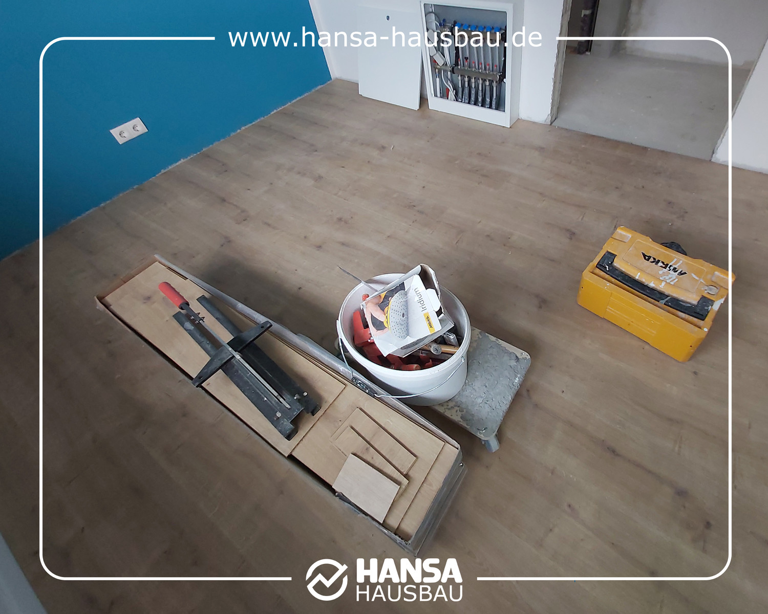 Wir bauen ein modernes Doppelhaus mit zwei Vollgeschossen im Baugebiet „Westlich Speckener Straße“ in Kirchlinteln. Der Innenausbau läuft derzeit auf Hochtouren, hier ein paar Bilder von den Malerarbeiten und den Bodenbelagsarbeiten.