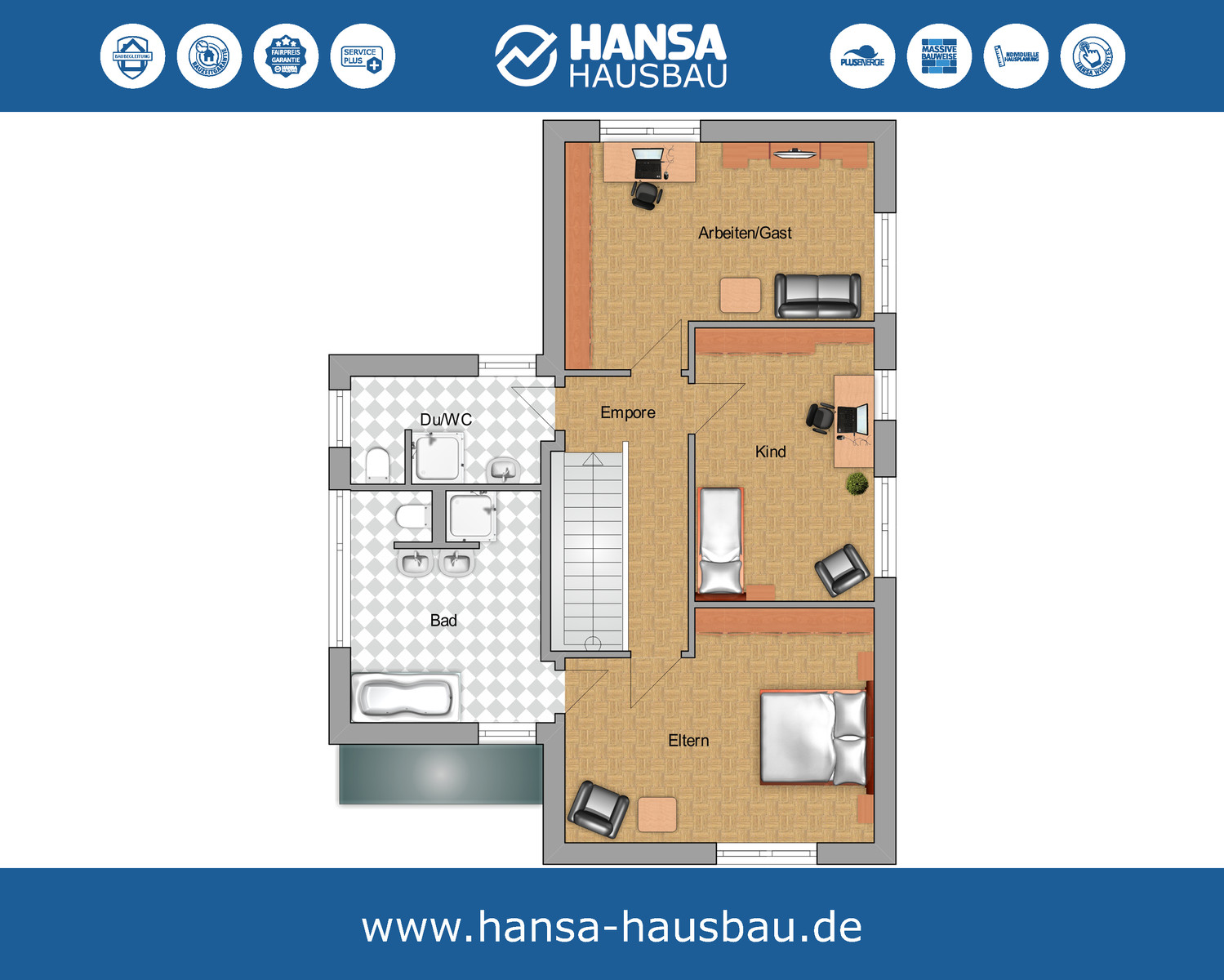 - Ausführung als Effizienzhaus KfW 55, KfW 40 oder KfW 40 Plus möglich!